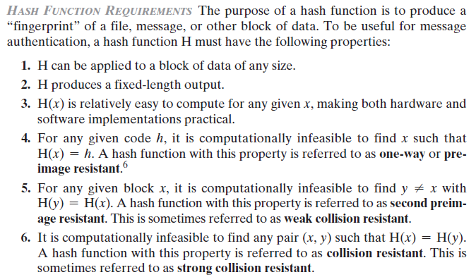 Hash function requirements