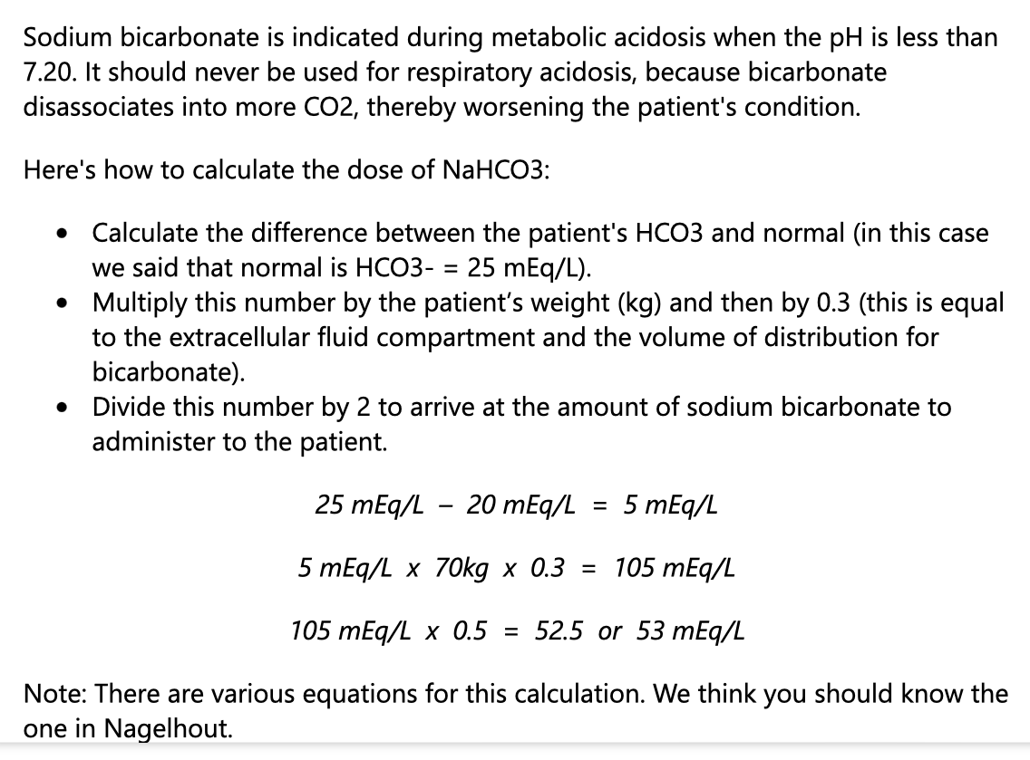 A 70-kg pt has a pH of 7.2 and HCO3 of 20. How much bicarb should be administered to correct to a serum HCO3 of 25?