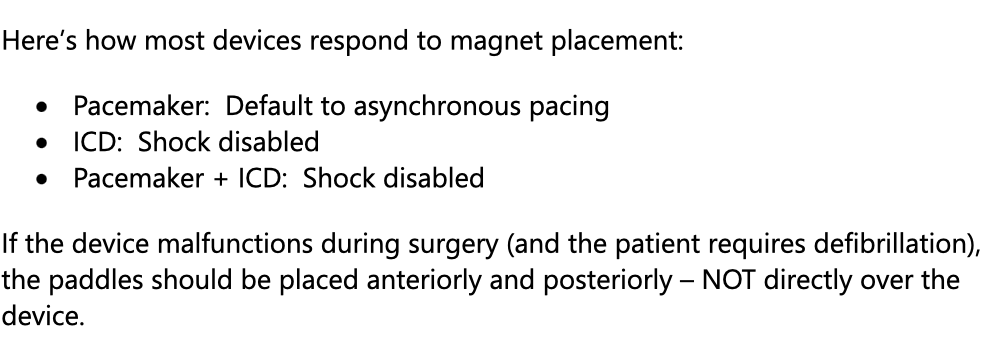 How does a placing a magnet on top of a pacemaker, ICD, & ICD + PM affect each?
