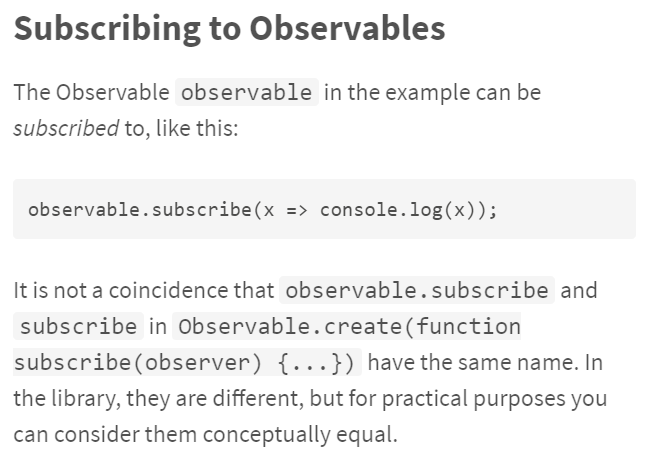 observable.subscribe(x => console.log(‘Observer got a next value: ‘ + x));
