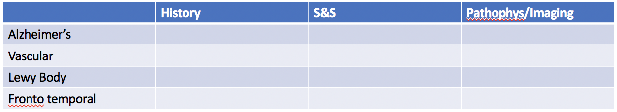 fill in this table