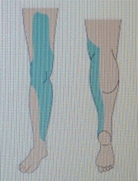 anterior: saphenous n. + great saphenous v