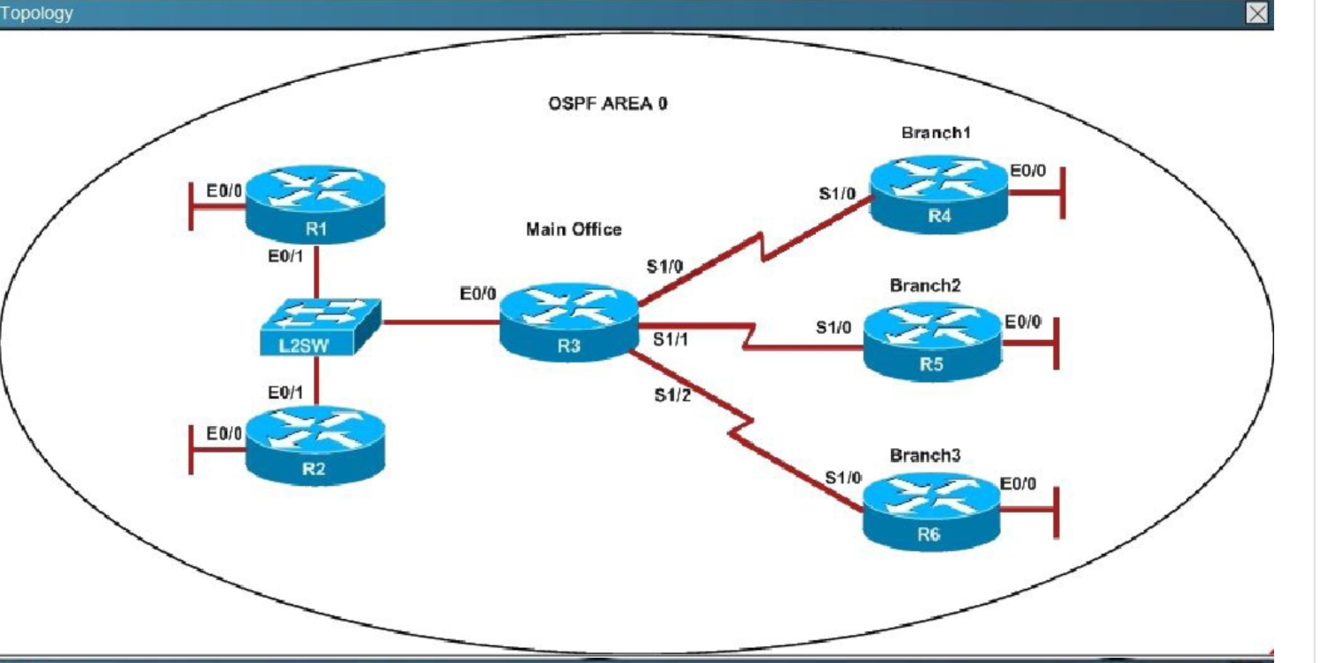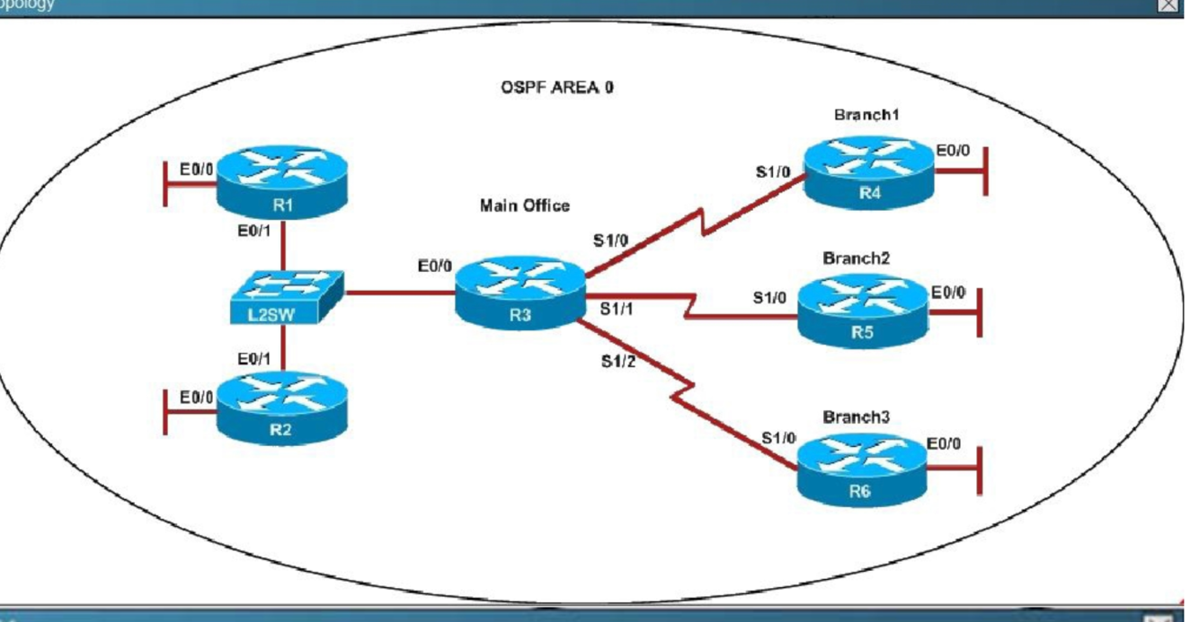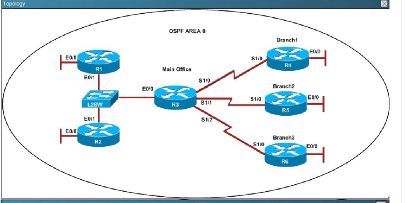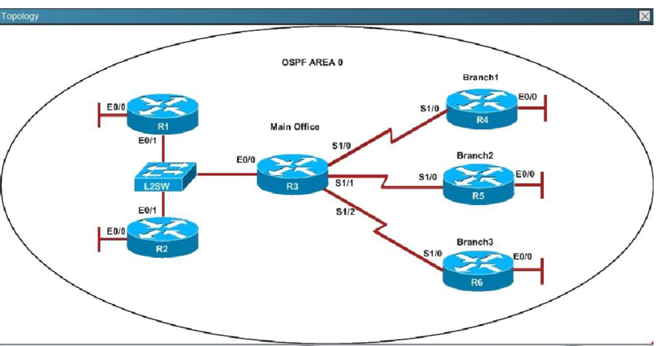 We are not sure about the configuration of ppp authentication in this case. Some reports said that only one router has the “ppp authentication chap” command but it is just a trick and is not the problem here. The real problem here is R6 uses the same router-id of R3 (192.168.3.3) so OSPF neighborship cannot be established. In real life, such configuration error will be shown in the command line interface (CLI). So please check carefully for this question.