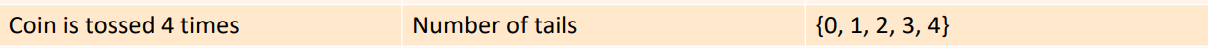 What is the random variable of a coin tossed 4 times and its sample space?