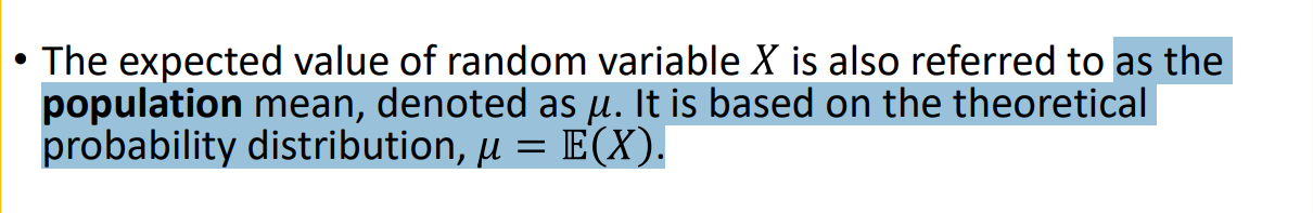 Expected value is the true population mean which is known with certainty only if the whole population is sampled.