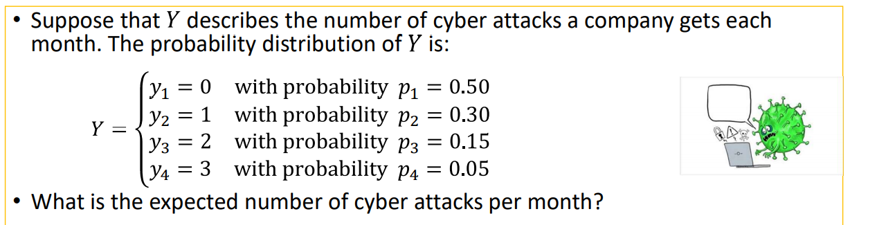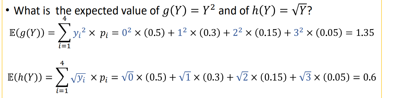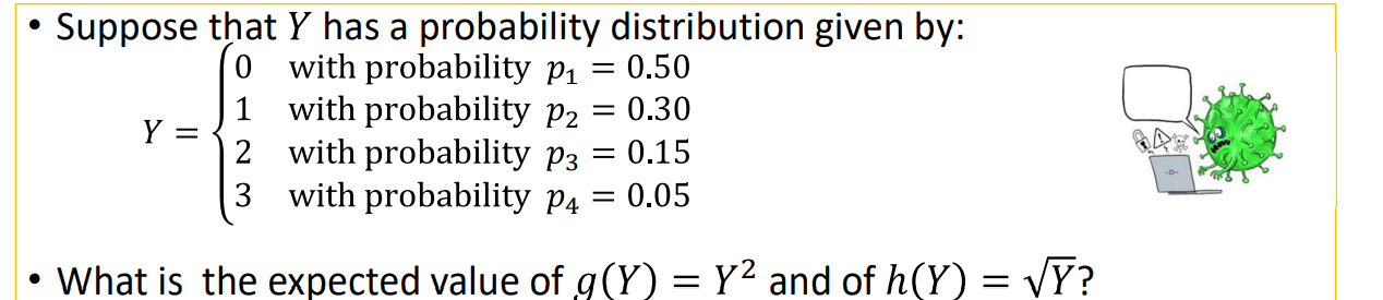 y as a variable whose values depend on outcomes of a random phenomenon or experiment