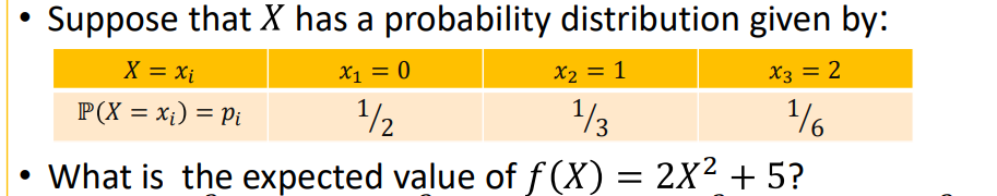 As each value of the random variable have different probabilities e.g. lets say the random variable X is the number of workout, with taking discrete values like 1,2,3,4,5,6, what can we use to find the average amount of workouts in a week?
