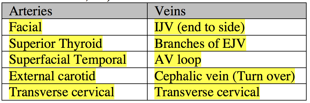 Recipient vessels for H and N recon?