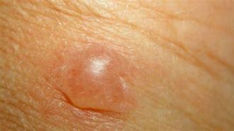A circumscribed, elevated lesion that measures <1cm & contains serous or hemorrhagic fluid (ex:small blister)