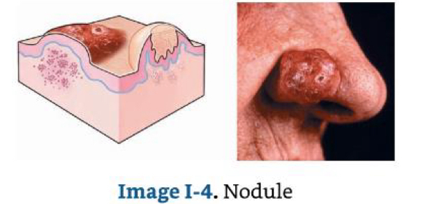 A palpable, solid, round ellipsoid lesion measuring ≥1cm; it differs from a plaque in that it is more substantive in its vertical dimension compared with its breadth.