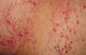 Nonblanching reddish macules representing extravascular deposits of blood, measuring ≤ 0.3cm (less than the size of a pencil eraser).