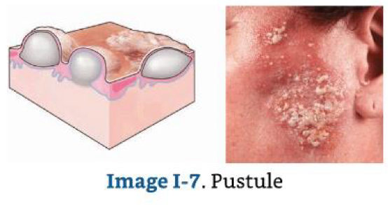 A lesion that contains pus; may be follicular (centered around the hair follicle) or nonfollicular.