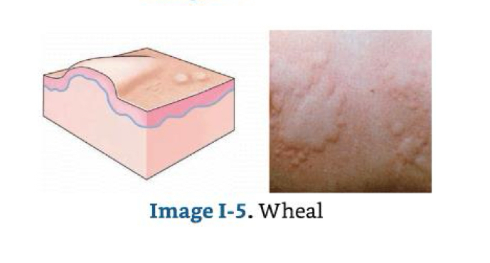A round or annular (ring-like), edematous papule or plaque that is characteristically evanescent, disappearing within hours; may be surrounded by a flare or erythema. (ex: hive)