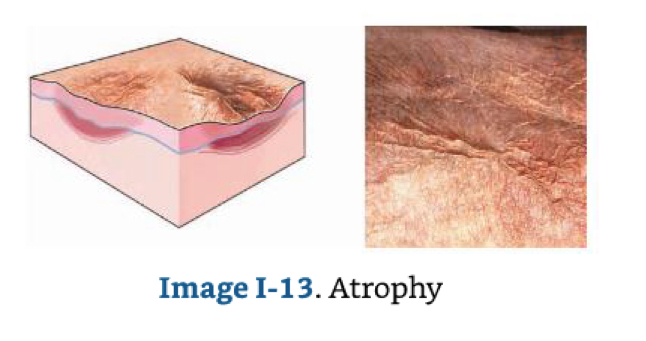 A depression in the skin resulting from thinning of epidermis, dermis and/or subcutaneous fat.