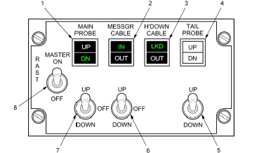 through a circuit breaker on the SO OVHD circuit breaker panel marked RAST SHEAR. A backup messenger cable