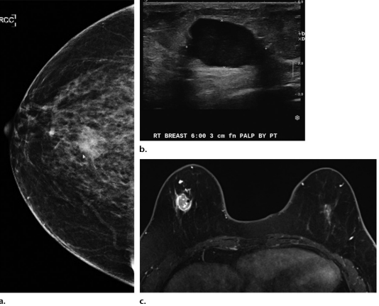 Ultrassonografia mamária: alternativa se RM contraindicada (sensibilidade 39–53%).