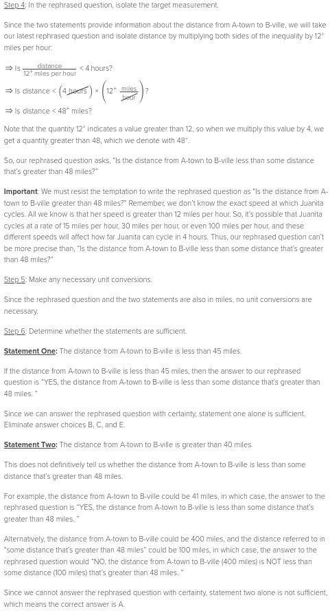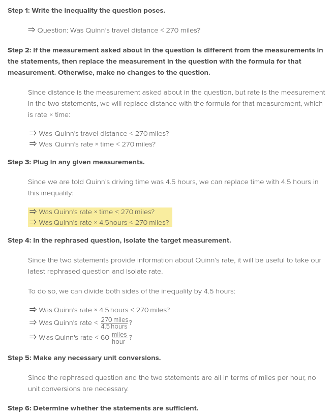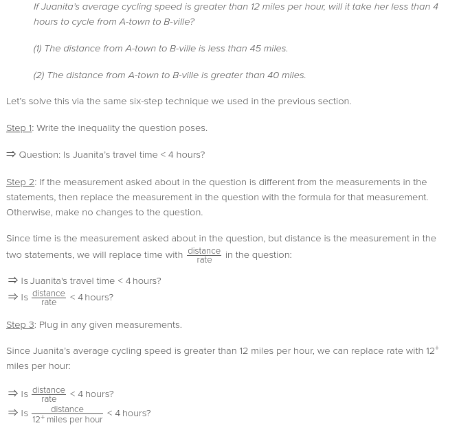 determining whether a rate, time, or distance meets an inequality with data sufficiency questions
