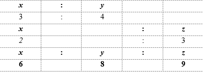 Complete the values for x : y : z