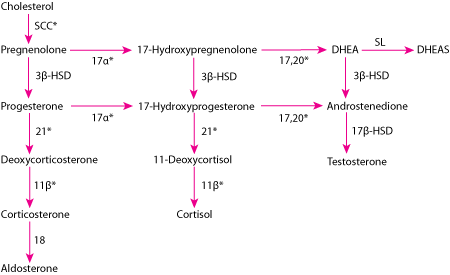 Þá myndast ekkia ldosterone og cortisol eins og skildi og cholesterolið myndar í staðinn testosterone.