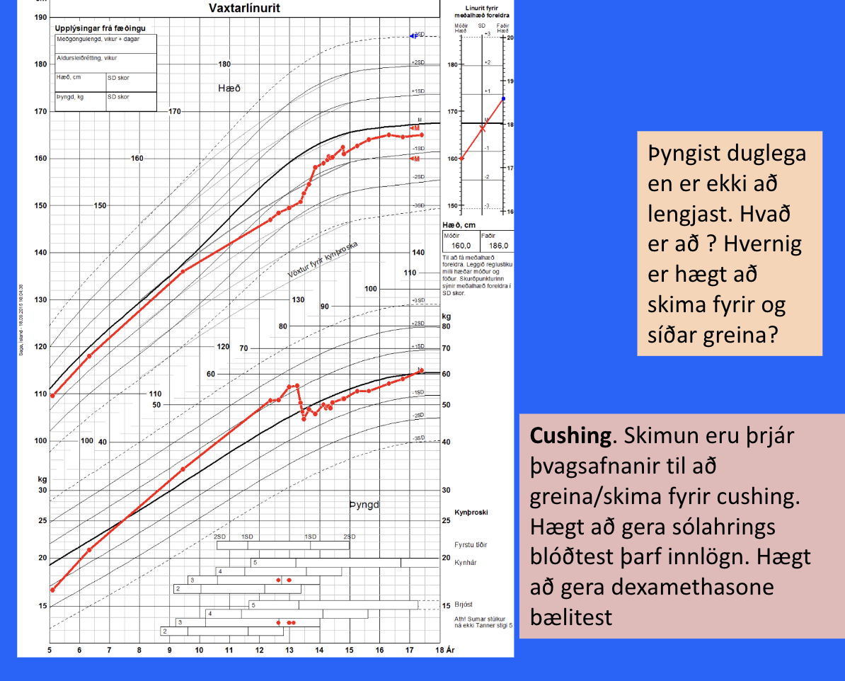 Unglingsstúlka með mikla þyngdaraukningu en stendur í stað í hæð. Hvað gæti það verið