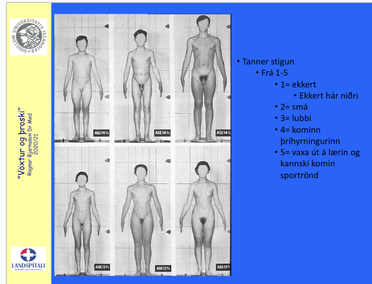 Mikil hröðun í hæð. Stækkaður penis, unglingabólur etc