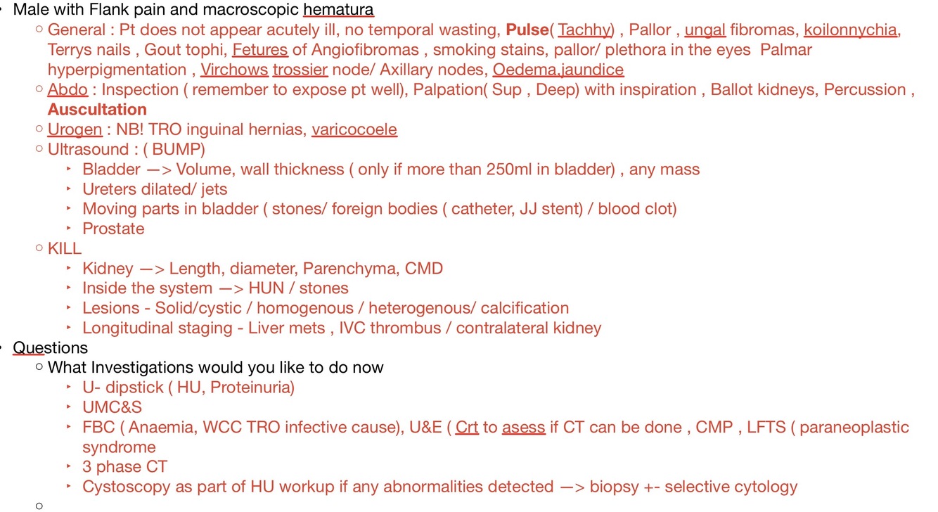 56 y/o Male with Flank pain and macroscopic hematuria . Do a General examination and Ultrasound