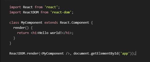 ReactDOM.render(<h1>Render me!</h1>, document.getElementById('app'));JSX