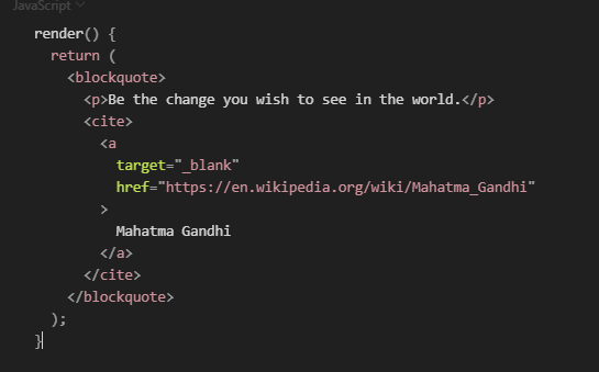 In order for the code to compile, a JSX expression must have exactly one outermost element. In the below block of code the <a> tag is the outermost element.</a>