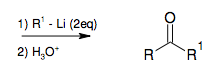 What is the result o a Carboxylic Acid of adding 2 equivalent of R-Li followed by H30+ ?