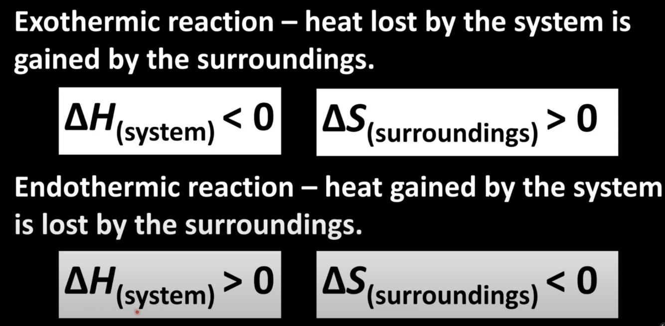 Comment on heat of surroundings and entropy of system for exothermic and endothermic
