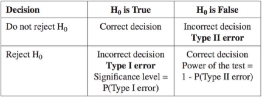Hypothesis tests are used to make inferences about population parameters using sample statistics. There is always a possibility that the sample may not be perfectly representative of the population, and that the conclusions drawn from the test may be wrong. There are two types of errors that can be made when conducting a hypothesis test: