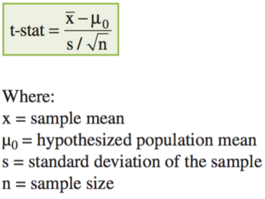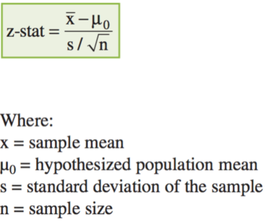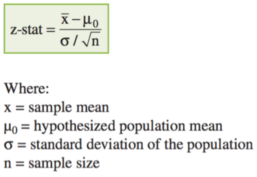 Essentially, a hypothesis test involves the comparison of a sample’s test statistic to a critical value. The test statistic is calculated as: