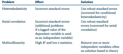 Summary of Heteroskedasticity, Serial Correlation, Multicollinearity:
