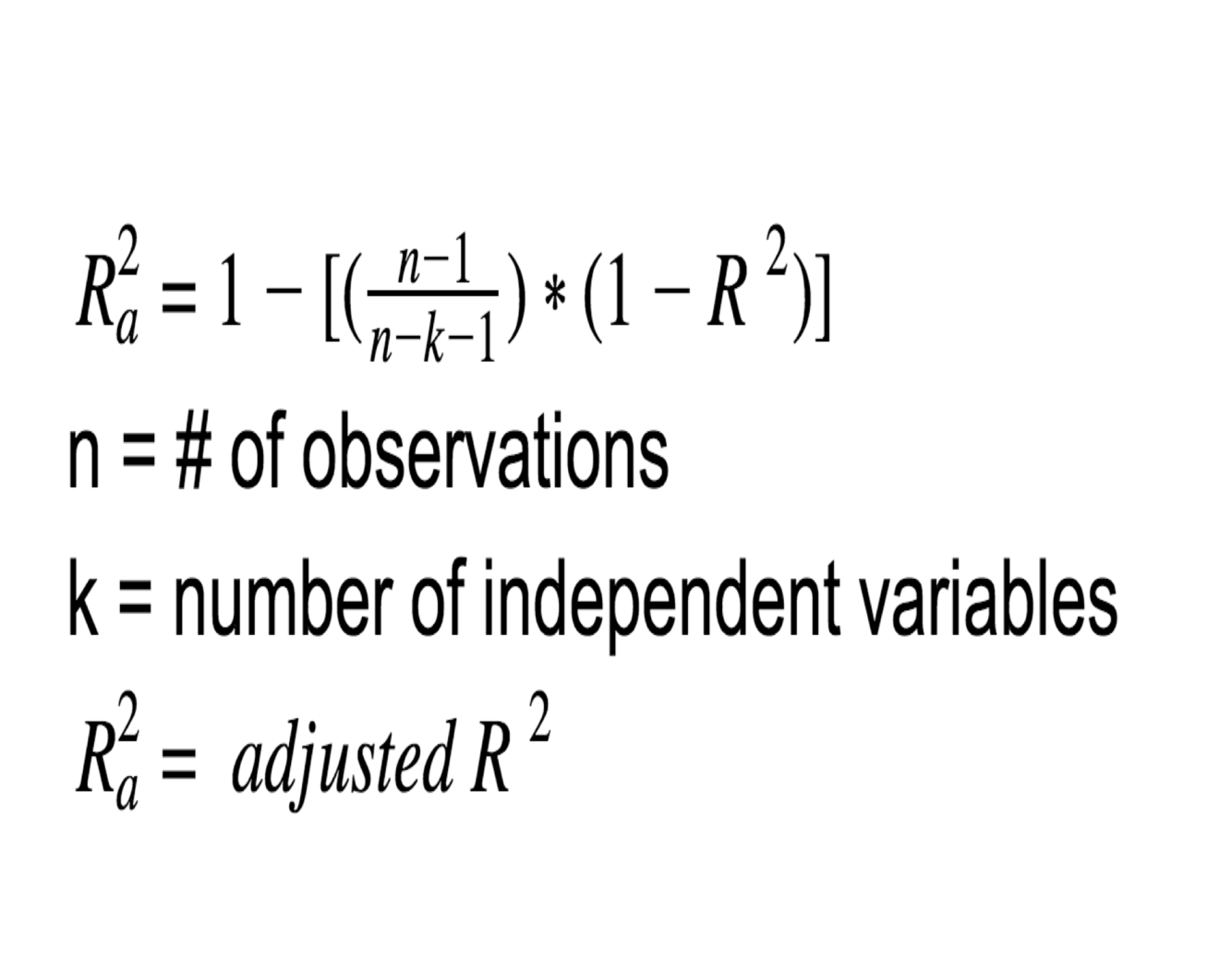 To overcome the deficits of the R2, statisticians have created an adjusted R2. What is the formula for this equation?