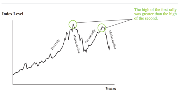 To construct the chart, an “X” is plotted for an increase in price, while an “O” is plotted for a decrease in price. For example, assume that the box size is $1 and the reversal size is $3. If the price rises by $1 on the first day, the analyst puts an X. On the next day, if the price increases by $2 the analyst plots 2 further Xs on top of the X already plotted. On the third day, if the price rises by $0.50, nothing is plotted on the chart (as the price change is lower than the box size). The analyst will continue to mark Xs in the same column whenever the price increases by more than $1 on a given trading day until a reversal occurs. A reversal would occur in this case when the price falls by $3 or more. When a reversal occurs the analyst would move over to the next column and start marking Os. The first box to be filled with an O would be the one to the right and below the highest X in the previous column. (See Figure 2-6.)