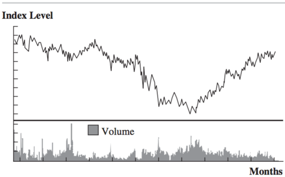 Volume is used by technicians as a barometer of the strength of a trend. Volume‐related information is typically included at the bottom of most charts (see Figure 2-9).