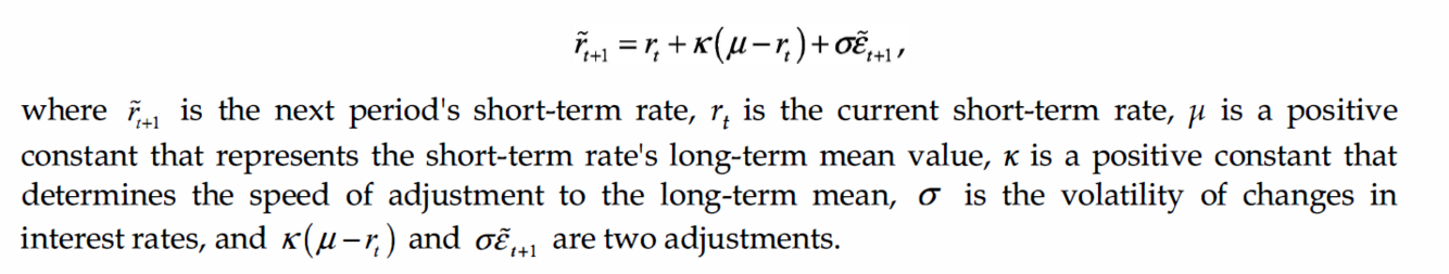 The Vasicek model may be expressed in terms of the next period’s expected short-term rate as: