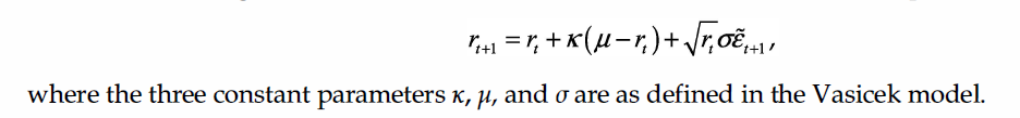 modifies the Vasicek model so that the variance of the short-term rate is proportional to the short-term rate (volatility equals q in the Vasicek model and equals root of q in the OR model.)