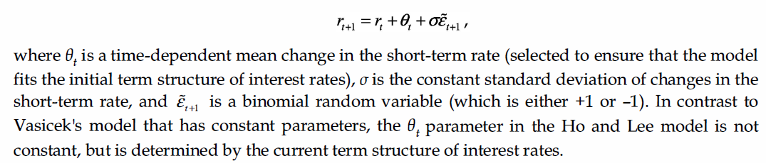 short-term interest rate follows a normally distributed process, with a DRIFT PARAMETER selected so that the modeled term structure of interest rates fits the observed term structure