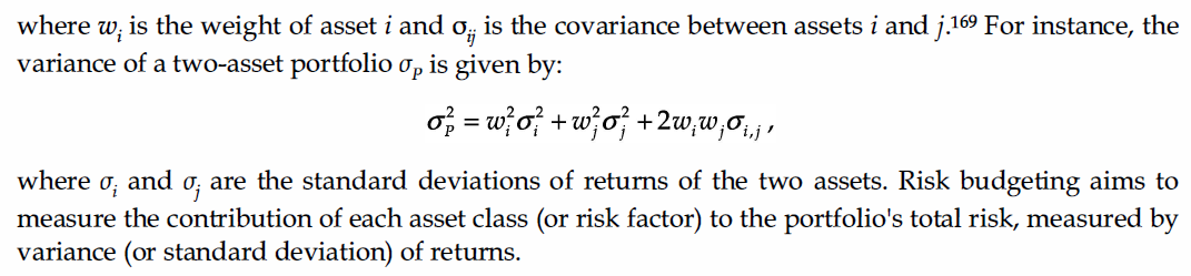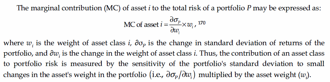 2) equal marginal risk contribution - each asset class contributes equally to the overall additional risk of the portfolio