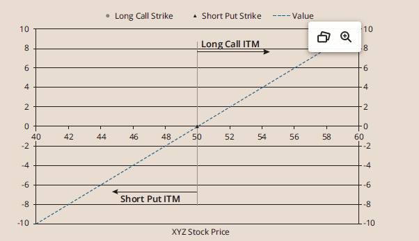 Long call and short put on the same underlying and same strike and expiration