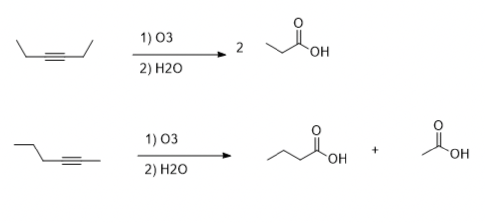 Cuts Alkyne and adds an O at the end of the alkane. Also adds an OH on the adjacent carbon