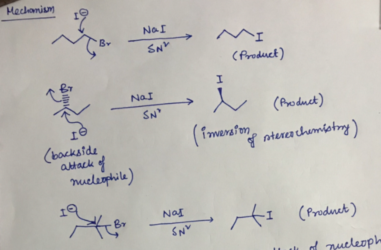 Na I dissociate into Na+ and I-. Halide leaves and the carbocation takes the I