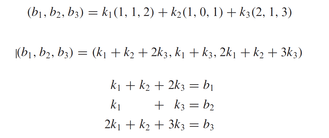 We must determine whether an arbitrary vector b = (b1, b2, b3) in R3 can be expressed as a linear combination