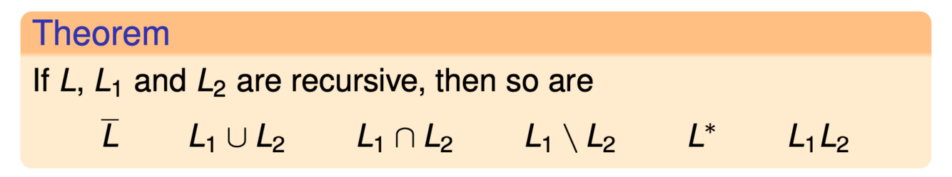 Name the 6 properties of recursive languages?