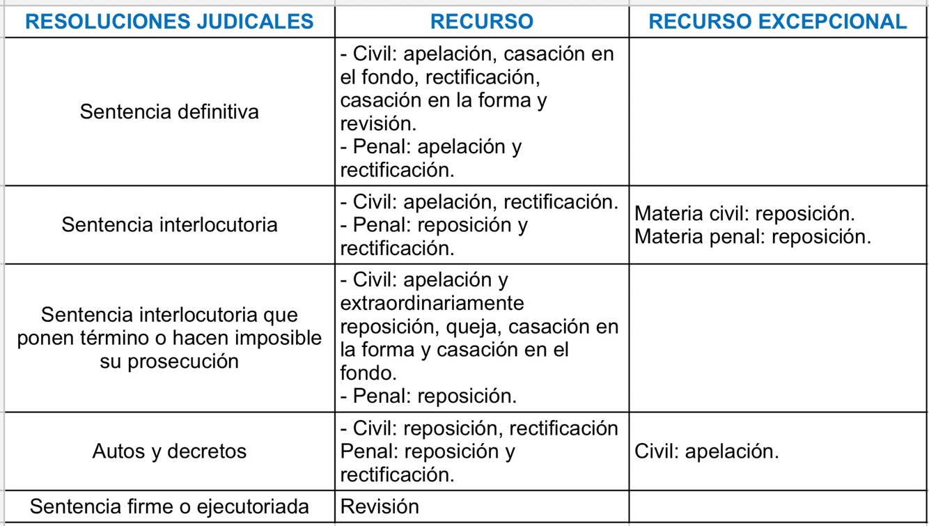 Resoluciones judiciales y recursos