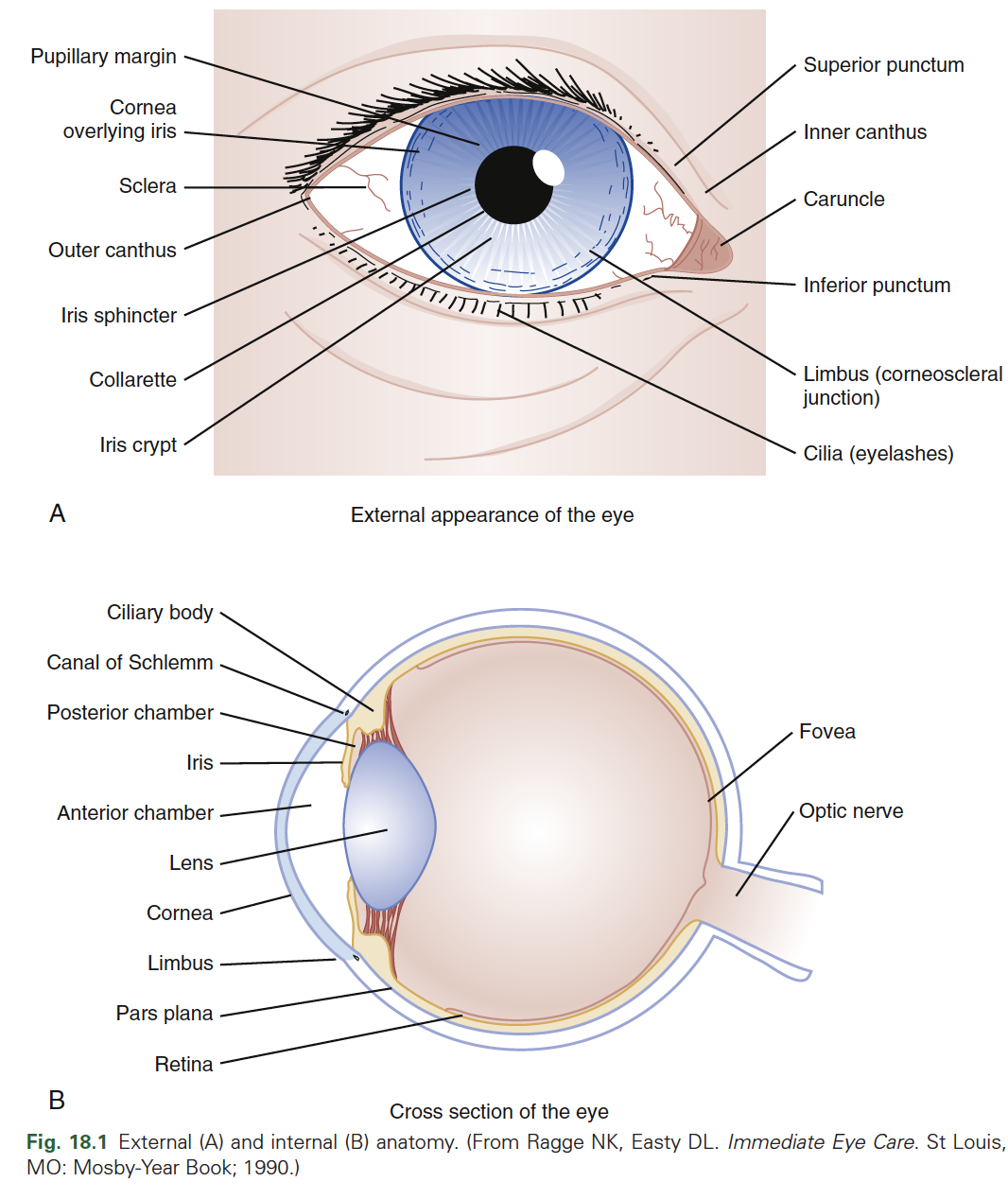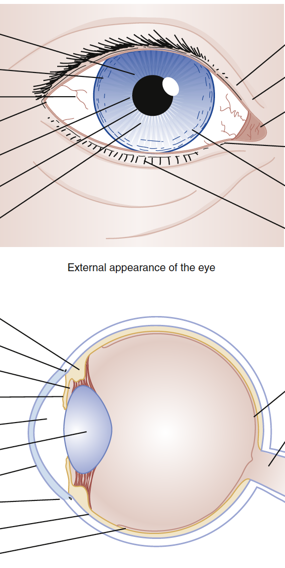 Outline relevent anatomy of the eye (Rosen’s diagrams)