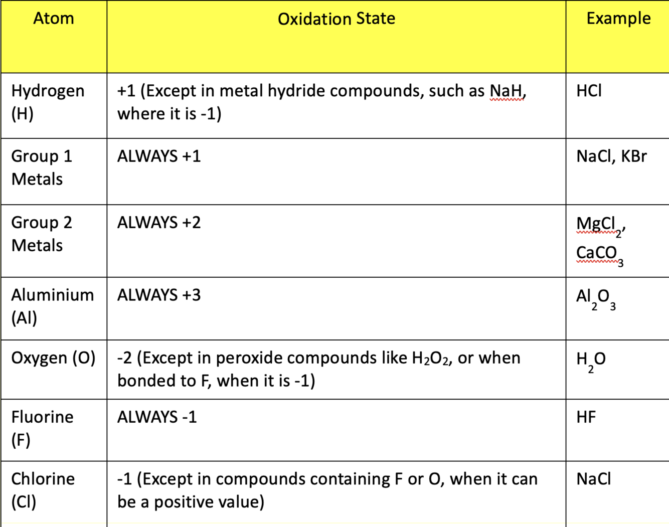 Uncombined elements (e.g. Mg, Na(s), O2(g), H2(g), Cl2(g)) have an oxidation state of zero