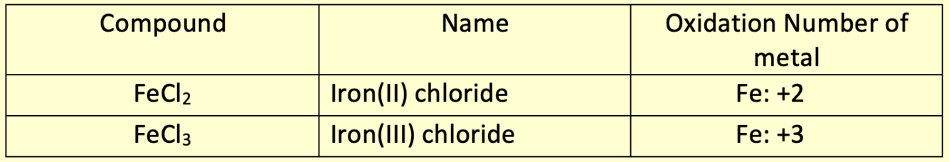 A Roman numeral is used to indicate the oxidation state of the transition element