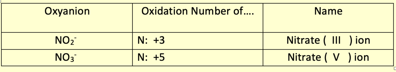 negative ions that contain oxygen ‘-ate’) and another element, e.g. sulfate, SO42-,